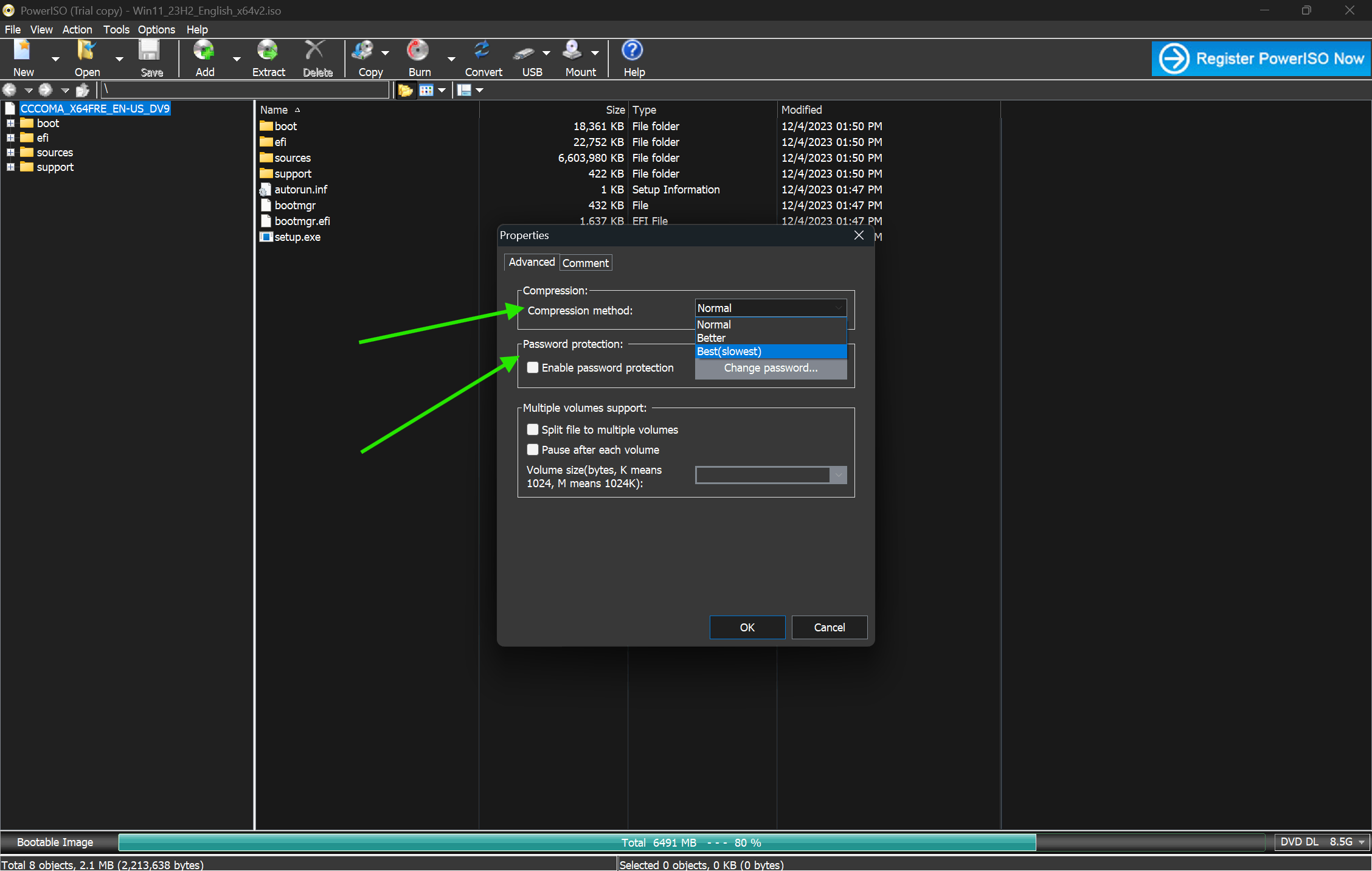 Choose your compression level. PowerISO offers several levels: Normal, High, and Ultra. Higher compression takes more time but produces a smaller file. For most users, "Normal" is a good balance.